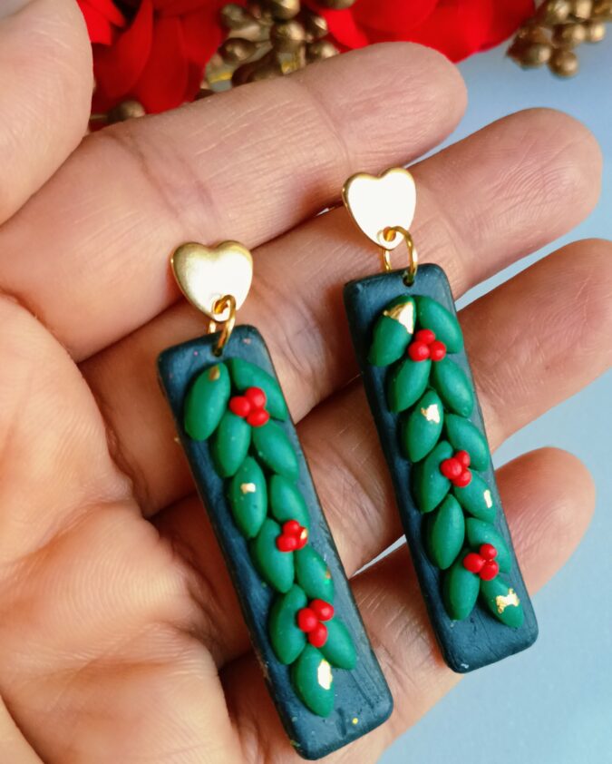 ₹599.00| Add a touch of holiday elegance with beautifully crafted for the Christmas season. These handmade polymer clay earrings make thoughtful holiday gift ideas for her. |